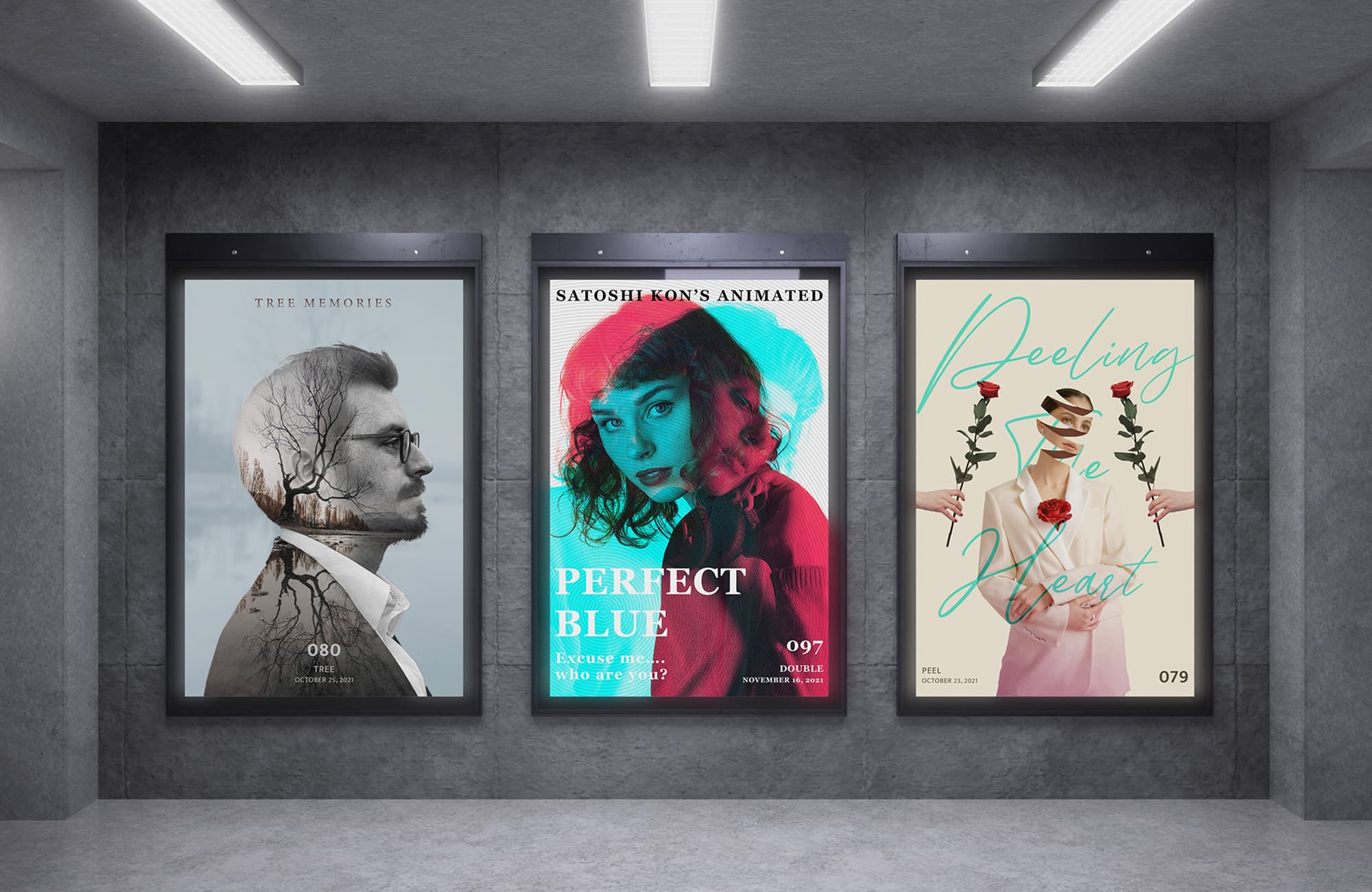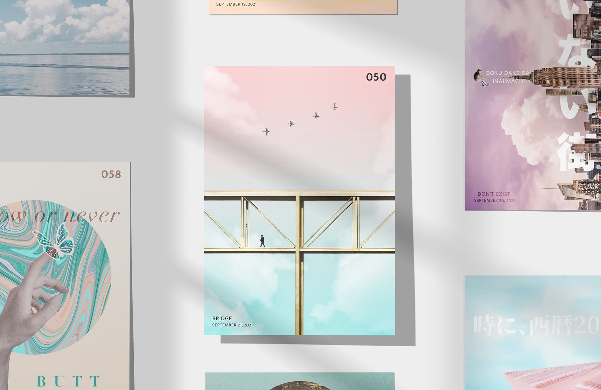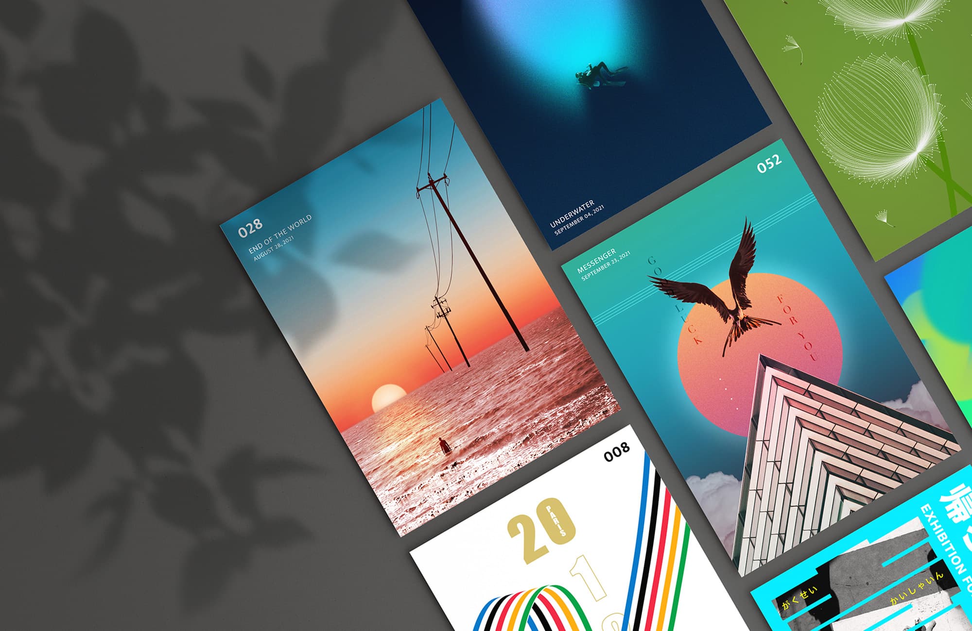 從2021.8月開始挑戰每日海報設計,並於2021.11月底完成100張的目標,目前仍持續進行2-3天一次的創作。