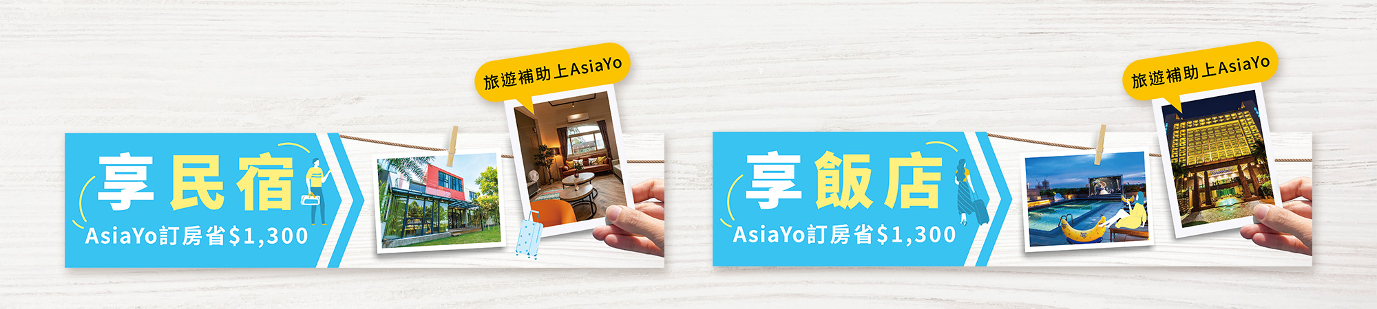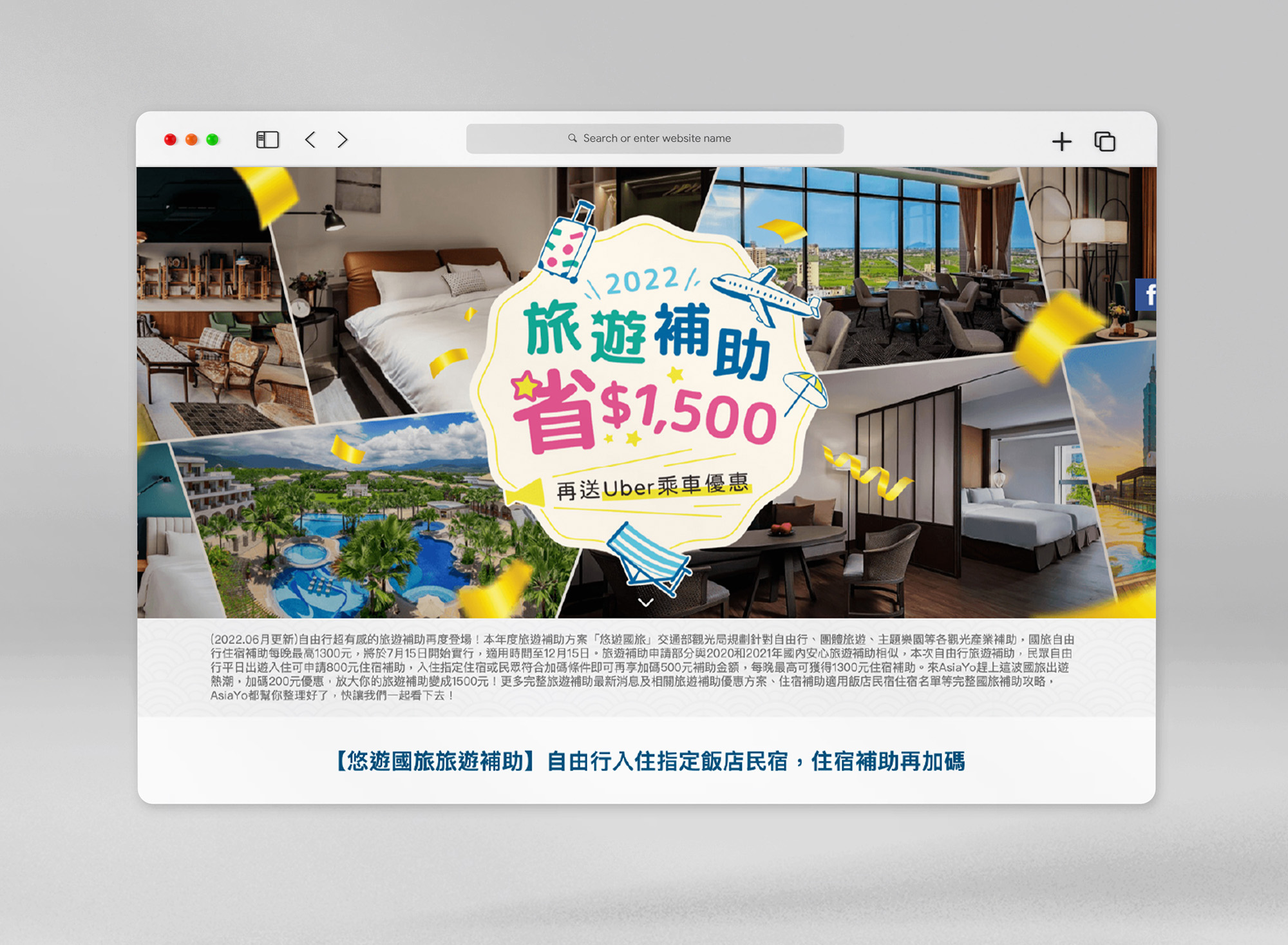 本次活動製作了兩種視覺,一種以 AsiaYo 旅宿照片為主;另一種則強調與合作夥伴 Uber 的乘車加碼。
